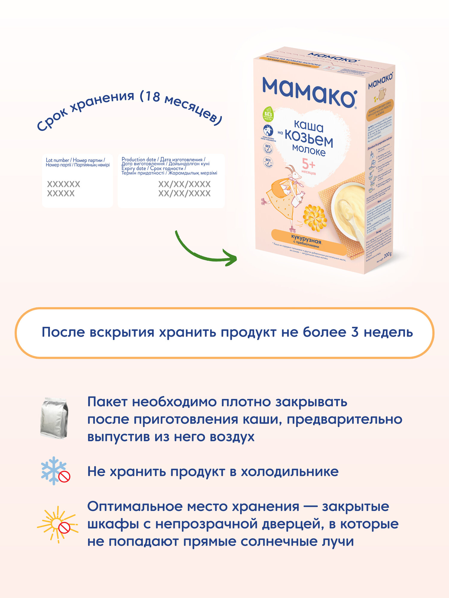 Каша на козьем молоке Мамако' мамако" кукурузная с пребиотиками с 5 мес 200 г интересное: