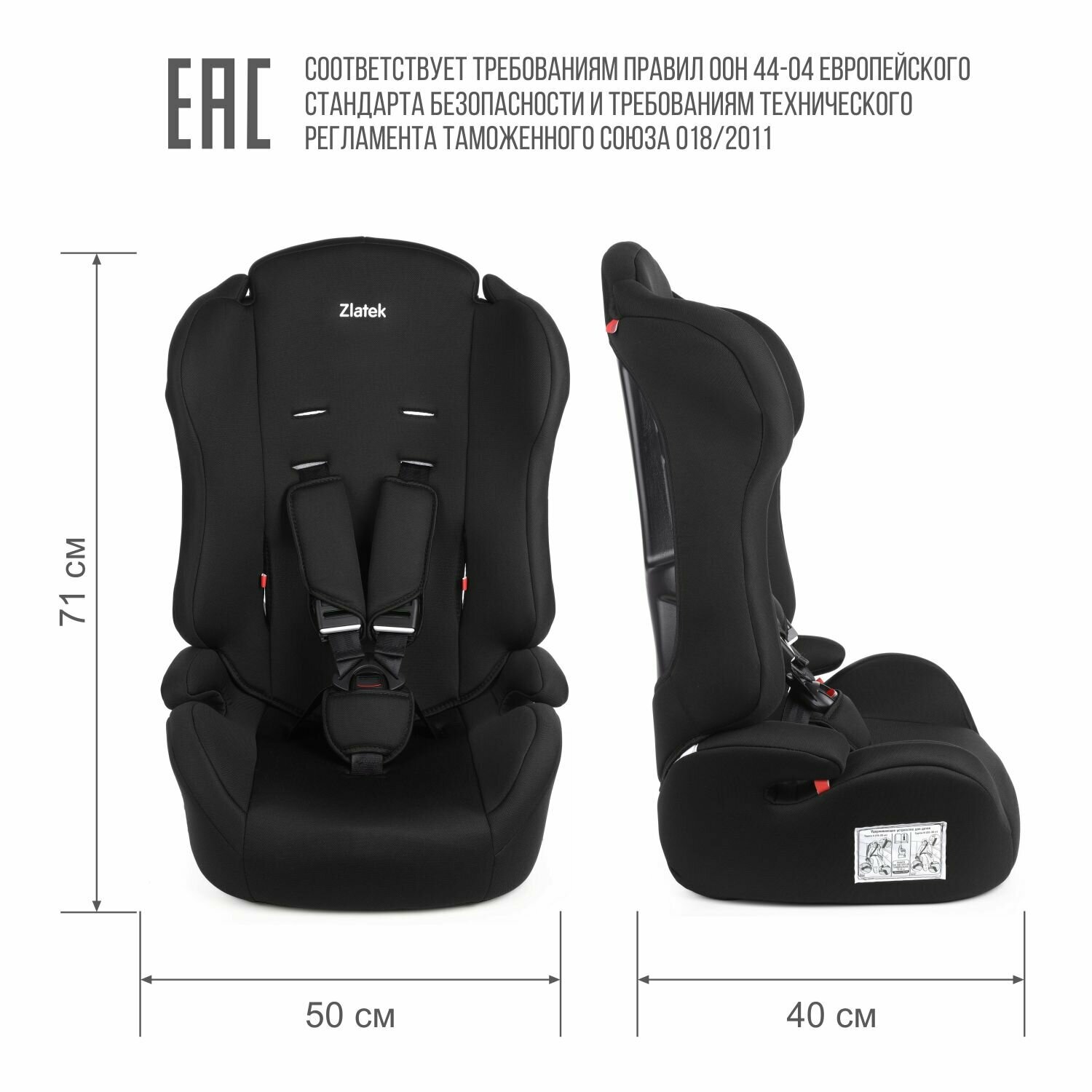 Автокресло детское 9-36 кг Zlatek atlantic (8 месяцев-12 лет) черный basic AZARD KRES3813 | цена за 1 шт