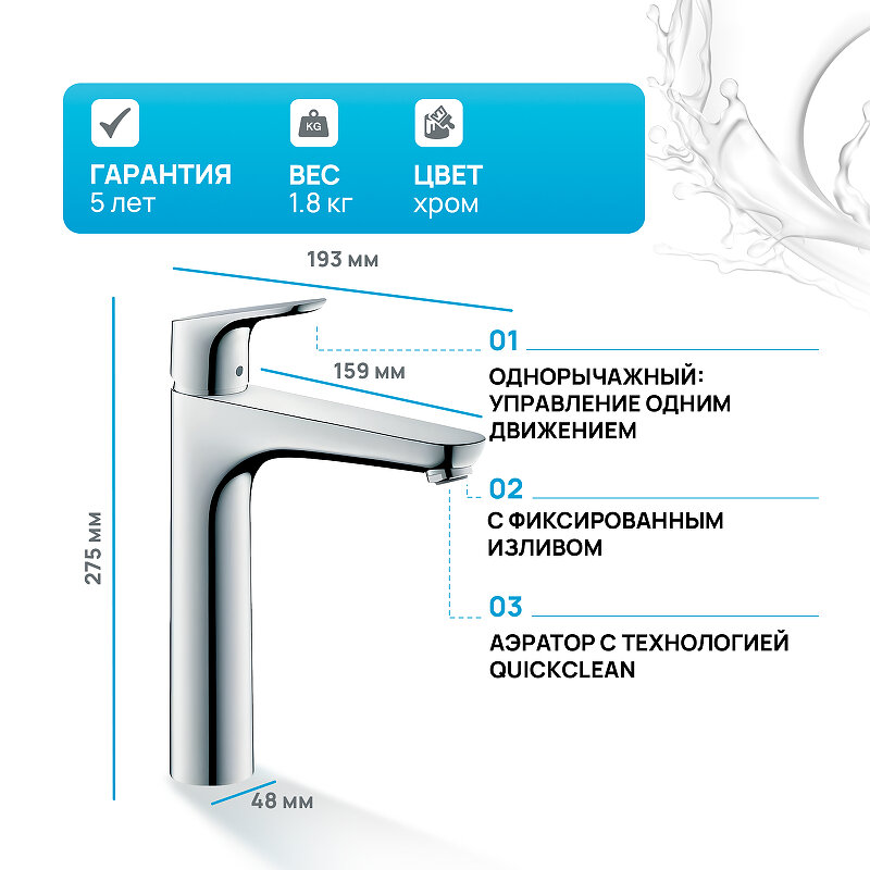 Hansgrohe 31608000 Focus Е2 смеситель для раковины высокий 00000008225 .