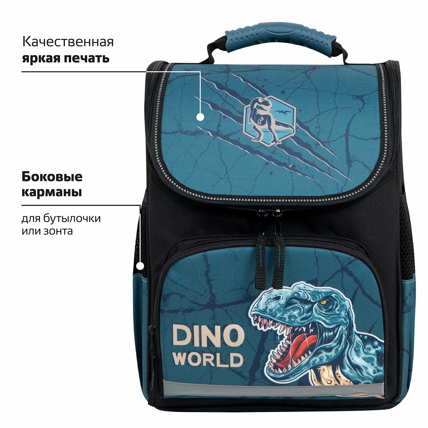 Рюкзак школьный для мальчика, портфель для первоклассника ортопедический, ранец детский в школу, эргономичная спинка, 1 отделение, 3 кармана, Пифагор Dino world, 35х28х18 см, 272046