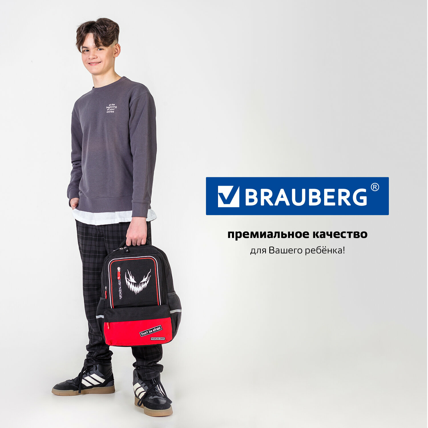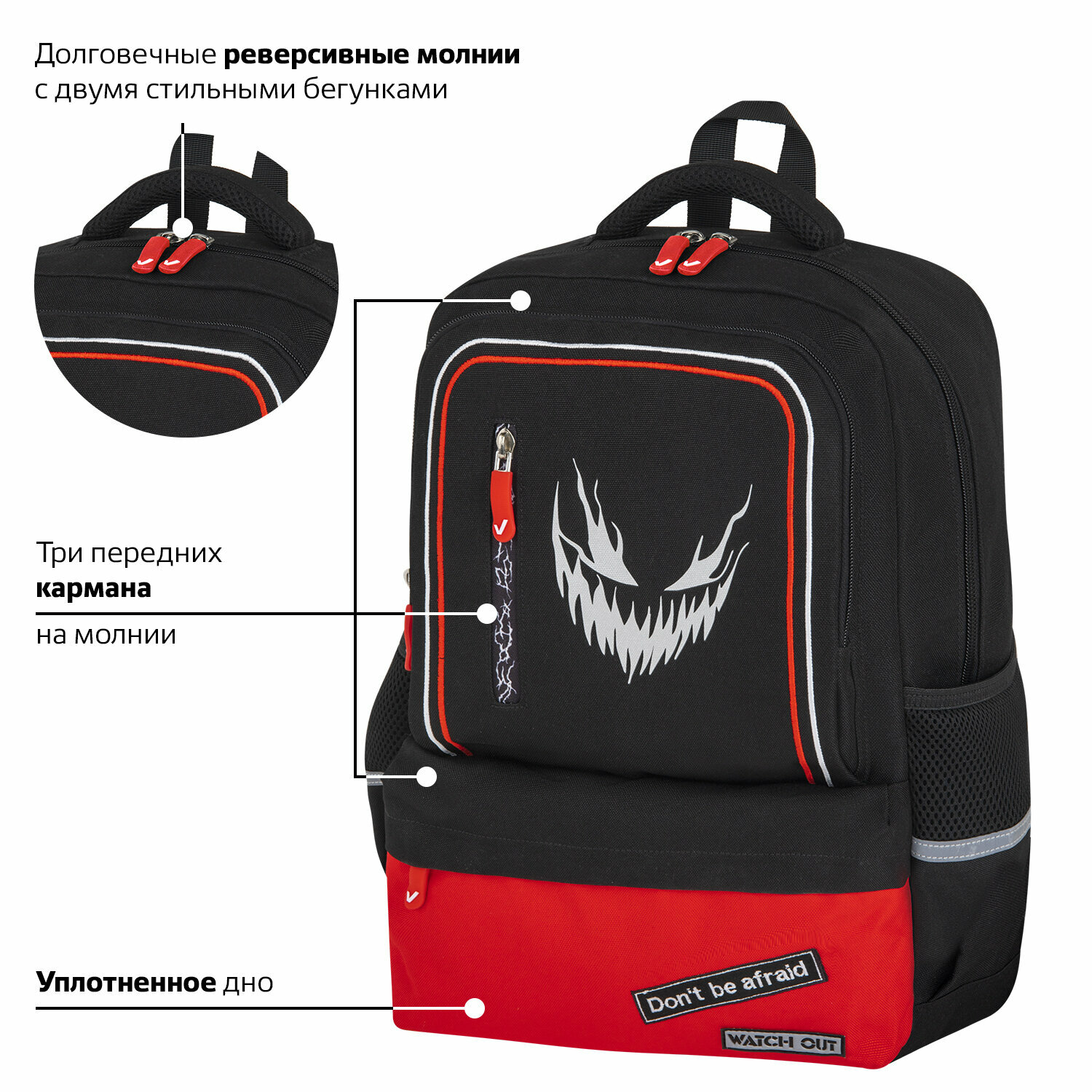 СохранитьРюкзак школьный для мальчика, ранец для подростка спортивный, портфель детский в школу, 1 отделение и 5 карманов, Brauberg Scary face, интересное: