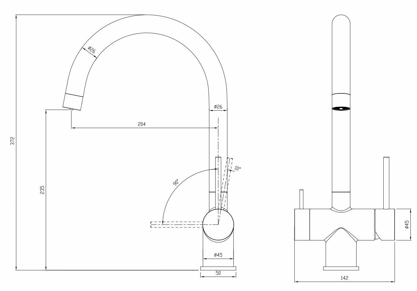 | Длина излива | 204 мм |