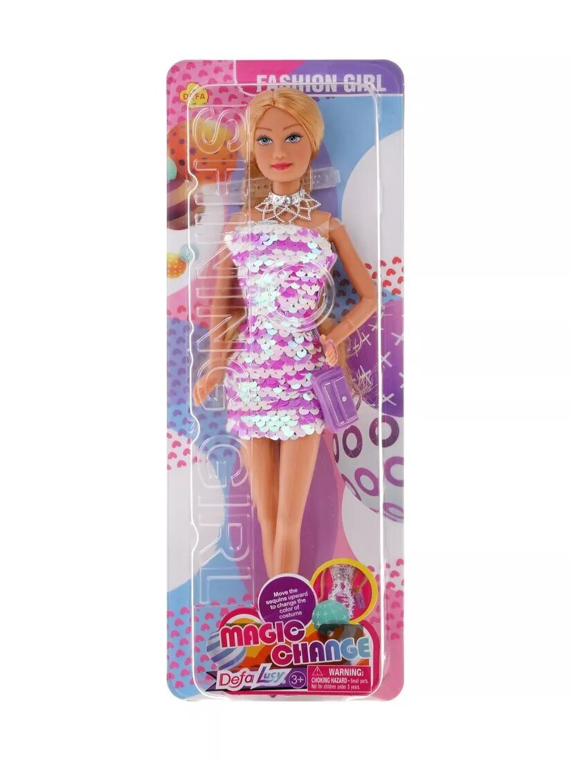 Кукла DEFA. с цветными двусторонними пайетками, в компл.1 аксесс., блистер Defa 8435c
