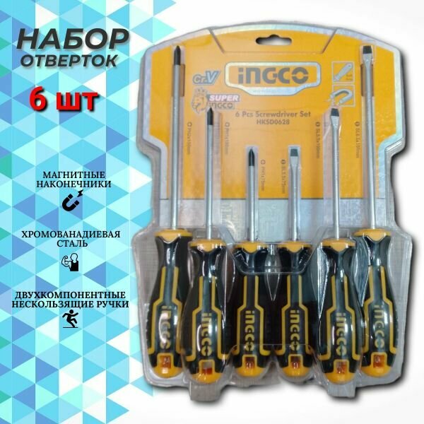 Купить Набор отверток с магнитным наконечником 6 шт INGCO (HKSD0628)