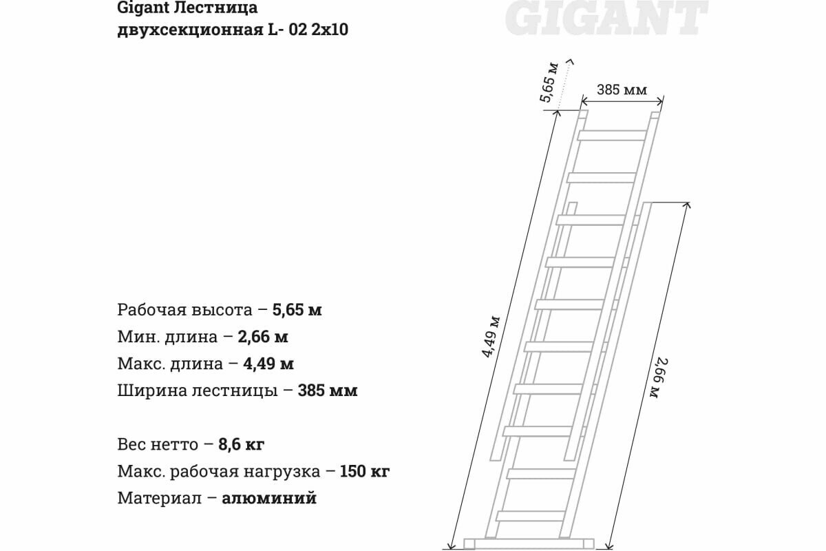 Двухсекционная лестница Gigant L-02 2х10 (Россия)