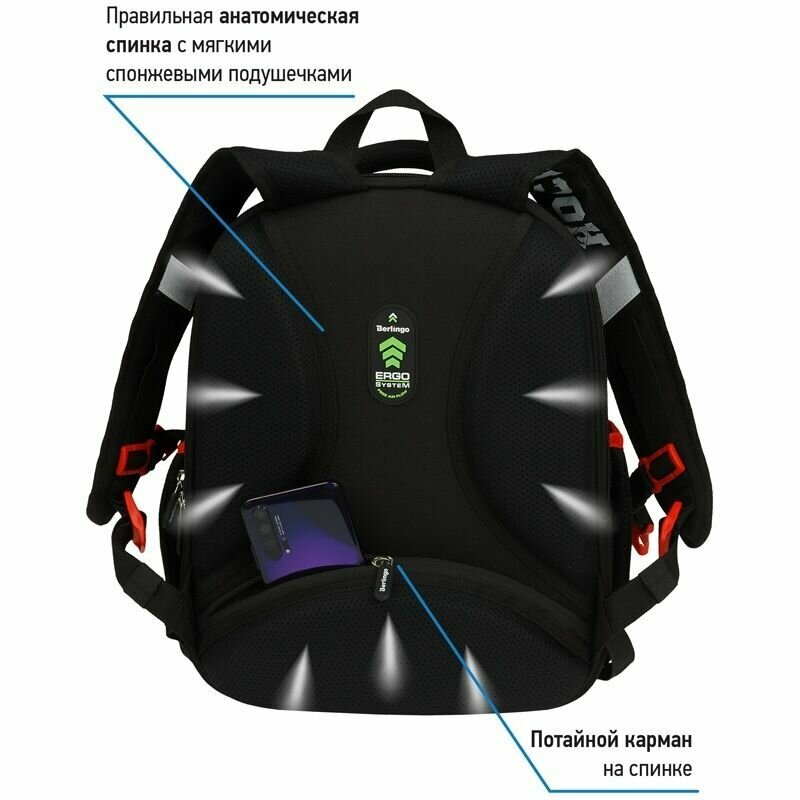 СохранитьРанец для мальчика Berlingo ортопедический, Profi "Ice" 36х28х14 см, 4 кармана, анатомическая спинка (RU07207) интересное: