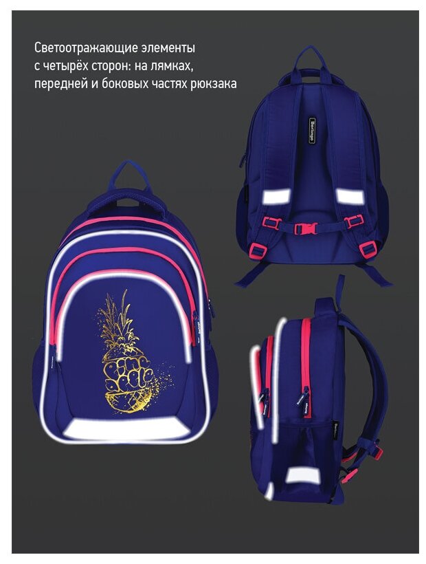 Рюкзак школьный Berlingo Bliss "Pineapple", 40x29x19см, 3 отделения, 2 кармана, анатомическая ЭВА спинка (RU08059)