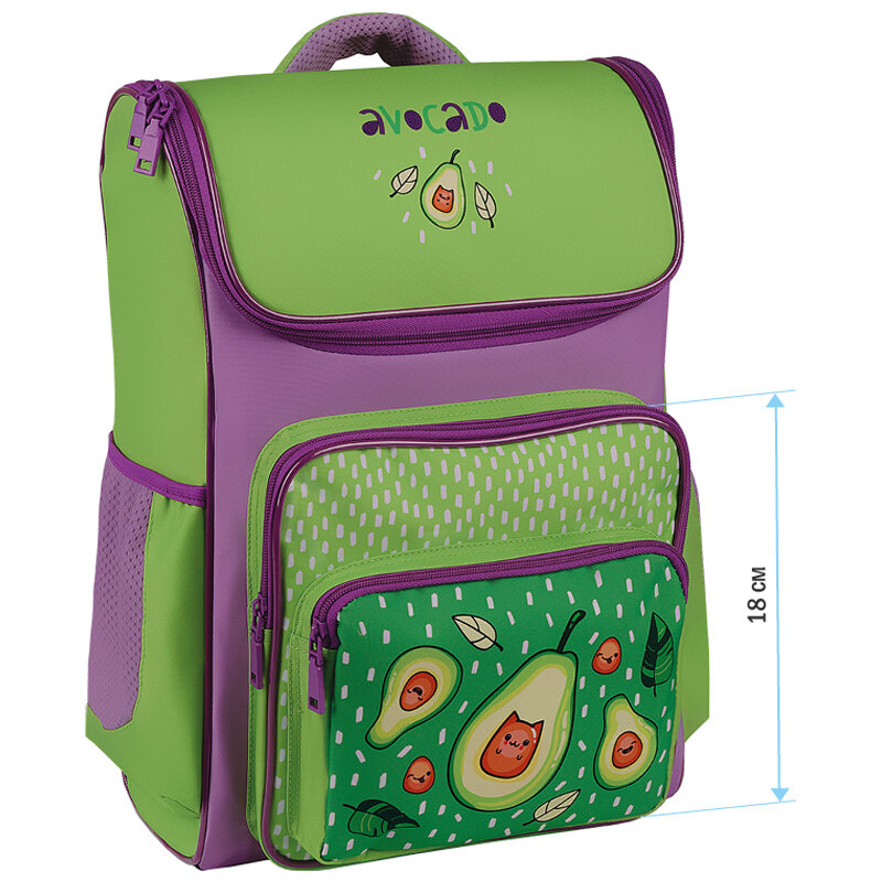 Ранец ArtSpace облегченный Happy School "Happy Avocado" 39*28*18см, 1 отделение, 4 кармана, анатомическая спинка