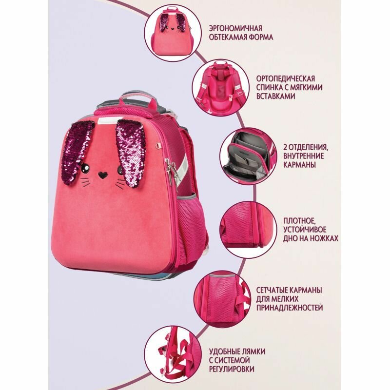 Ранец №1SCHOOL Basic Bunny ярко-розовый, 2 отделения, эргономичная спинка
