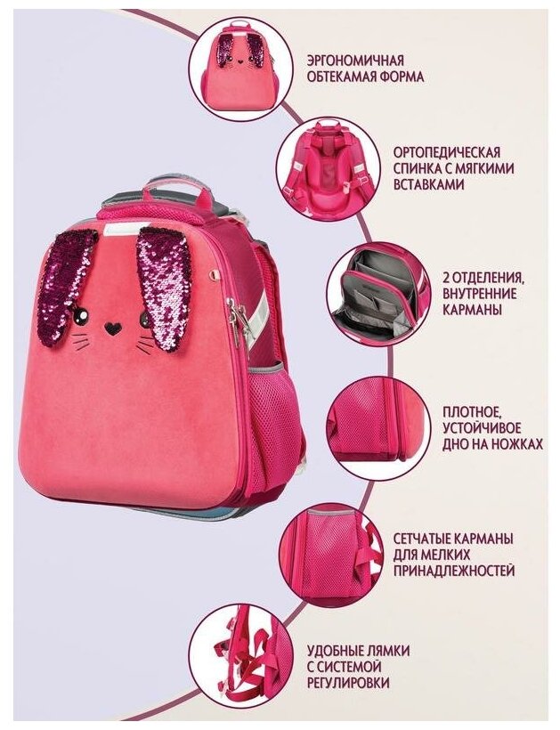Ранец Basic Bunny ярко-розовый, 2 отд., эргоном. спинка