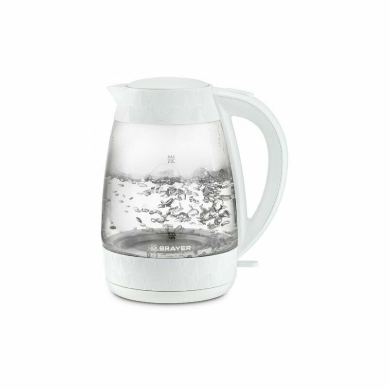 Купить Чайник электрический BRAYER 1024BR-BK, стекло, 2 л, 2200 Вт, белый