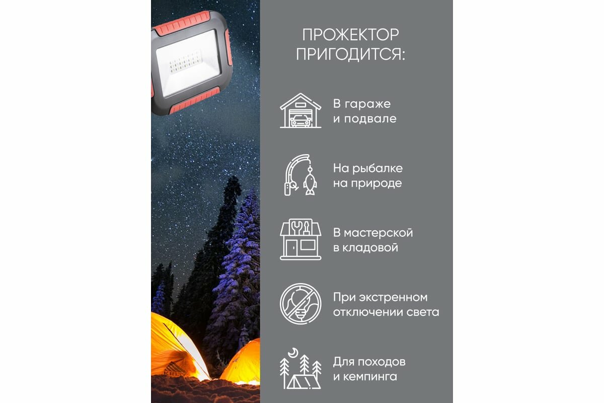 СохранитьАккумуляторный светодиодный прожектор-фонарь 10W, 6400K, 21*SMD2835, IP44, TL911 интересное: