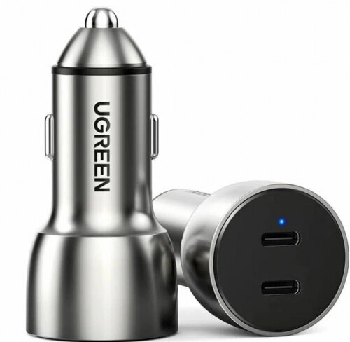 Автомобильное зарядное устройство UGREEN CD213 (70594) PD Car Charger с разъемами USB-C PD +USB-C PD. Цвет: серый космос