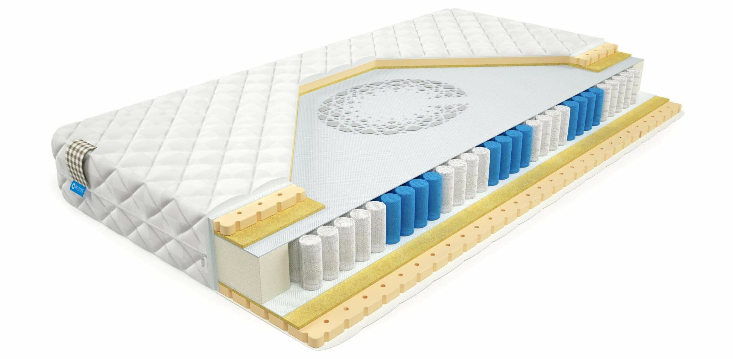 | Дополнительная информация | состав: съемный чехол «white plaid», натуральный латекс h - 3 см, латексированный сизаль h - 1 см, термовойлок (опция - BioCrystal 50 гр.), SilverSpringPocket 7 zone 580 пр/сп.м h - 14 см, термовойлок, латексированный сизаль h - 1 см, натуральный латекс h - 3 см, укрепляющий короб, внутренний чехол |