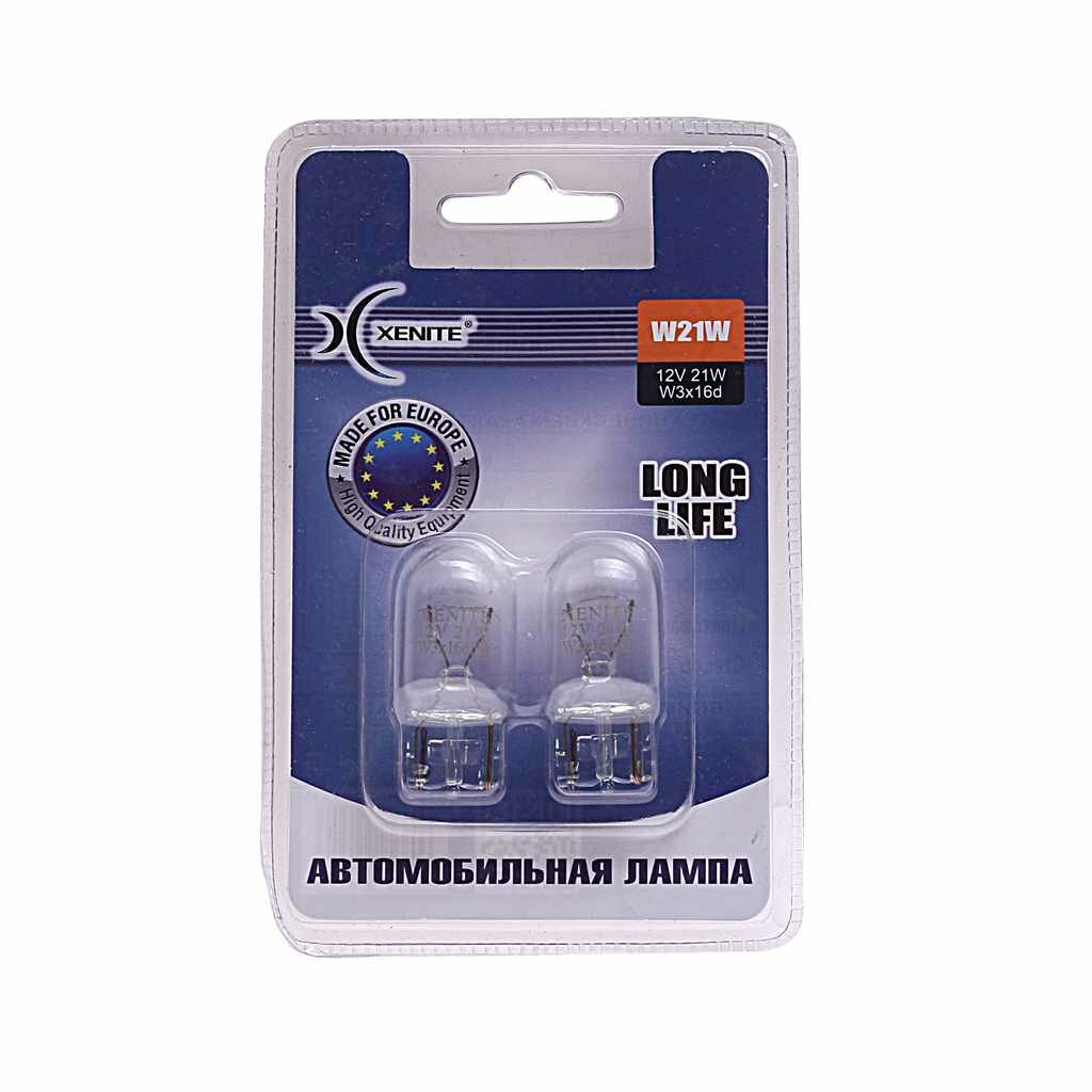 Лампа автомобильная XENITE W21W (W3*16d) (LONG LIFE) 12V 21W (блистер 2 шт.)