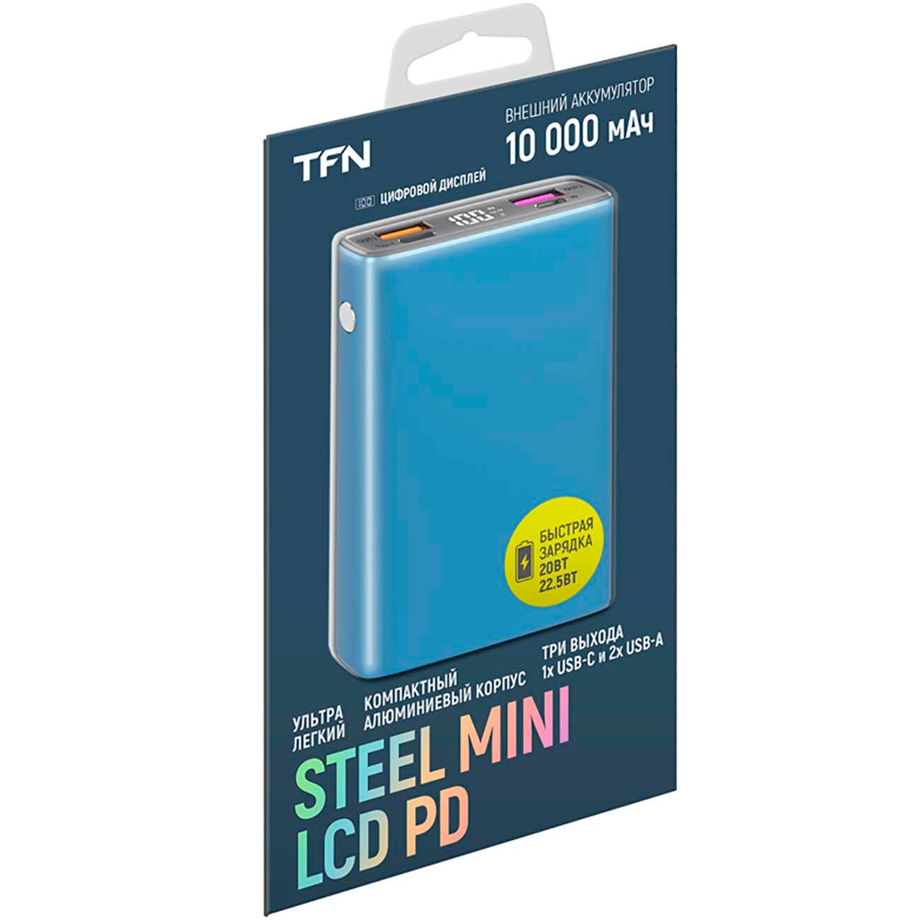 TFN АКБ 10000mAh Steel Mini LCD PD blue