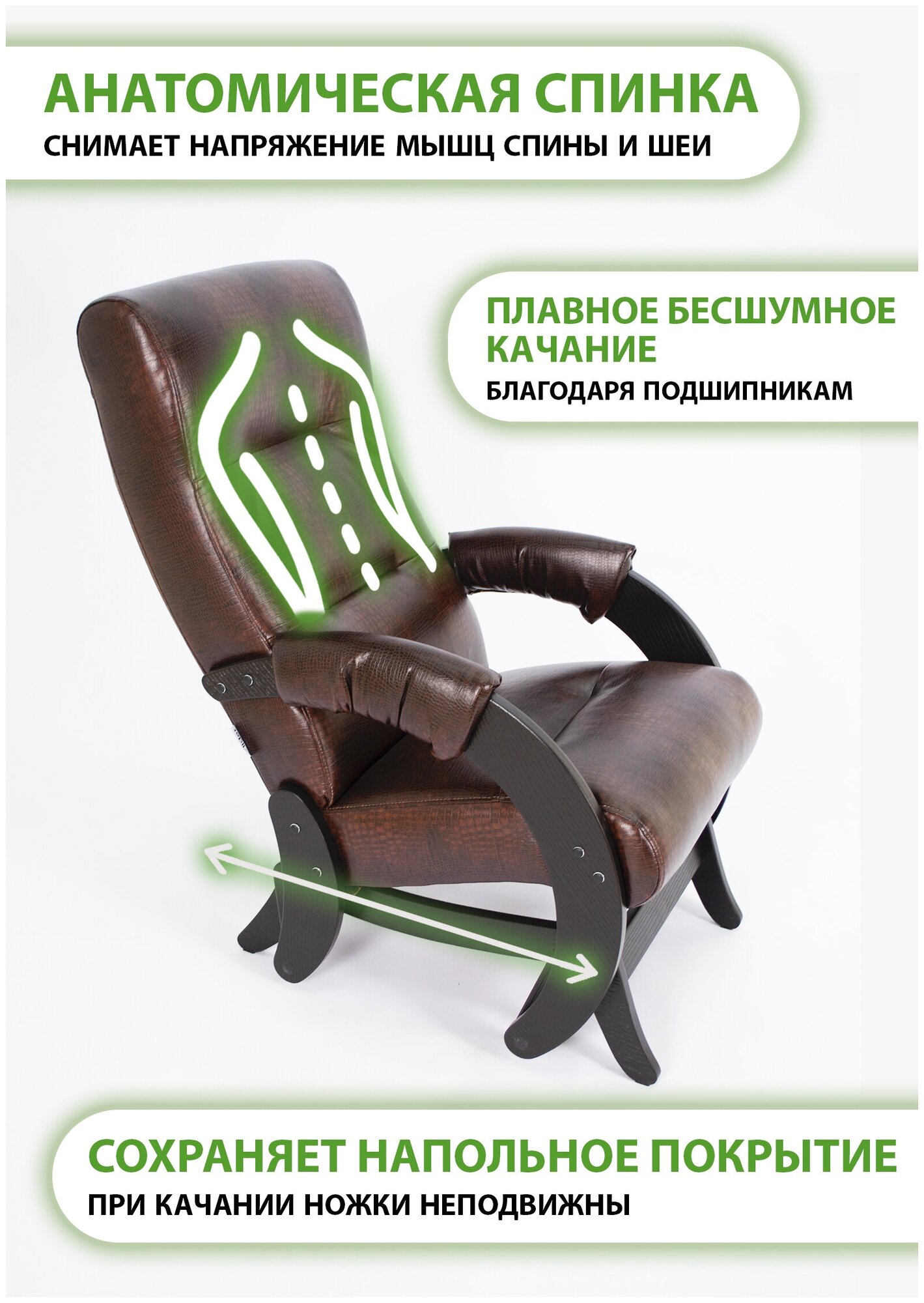 Кресло качалка маятник 68 Люкс глайдер AnticCrocodile\венге для взрослых для дома маятник для гостиной спальни в подарок