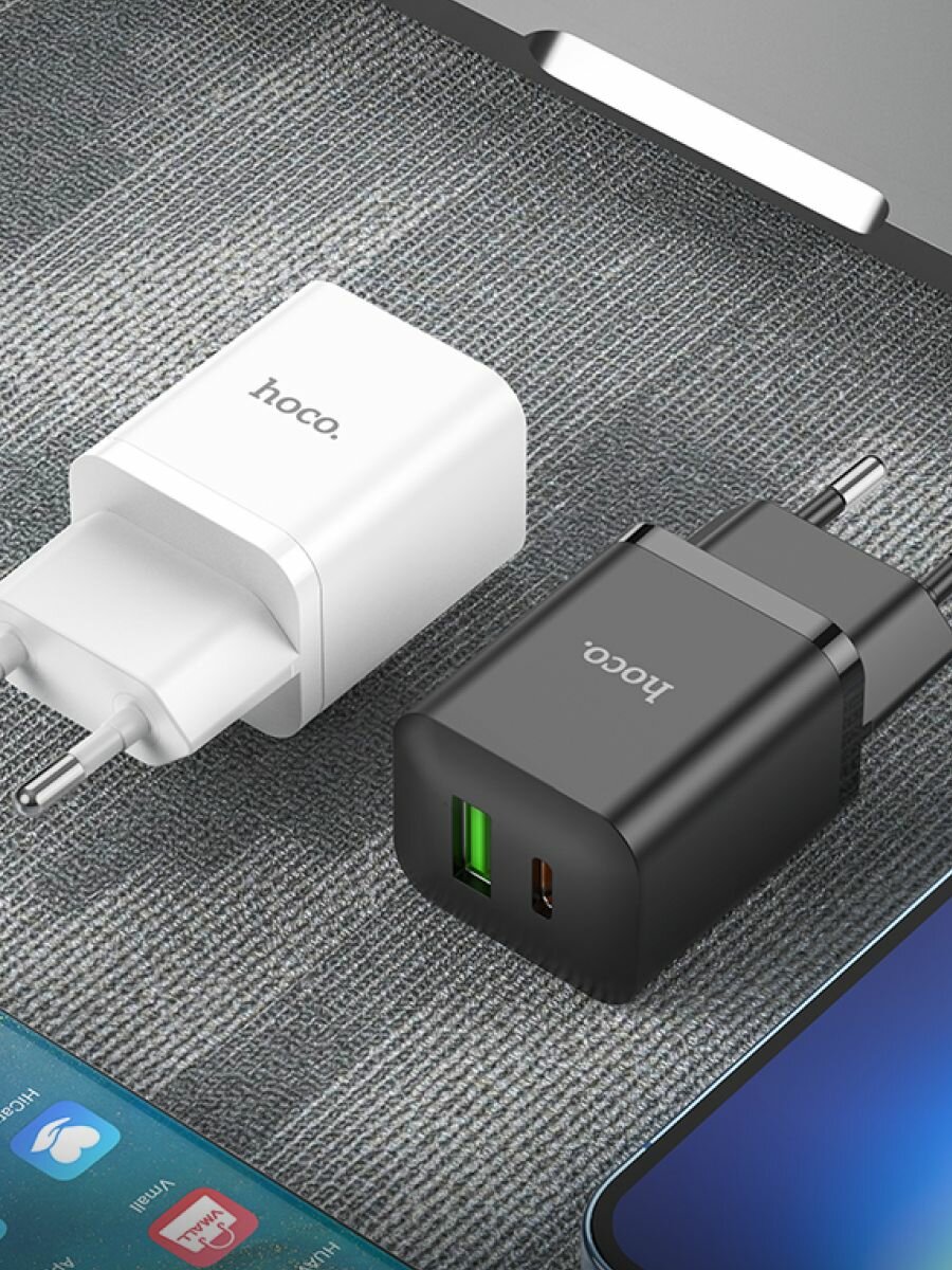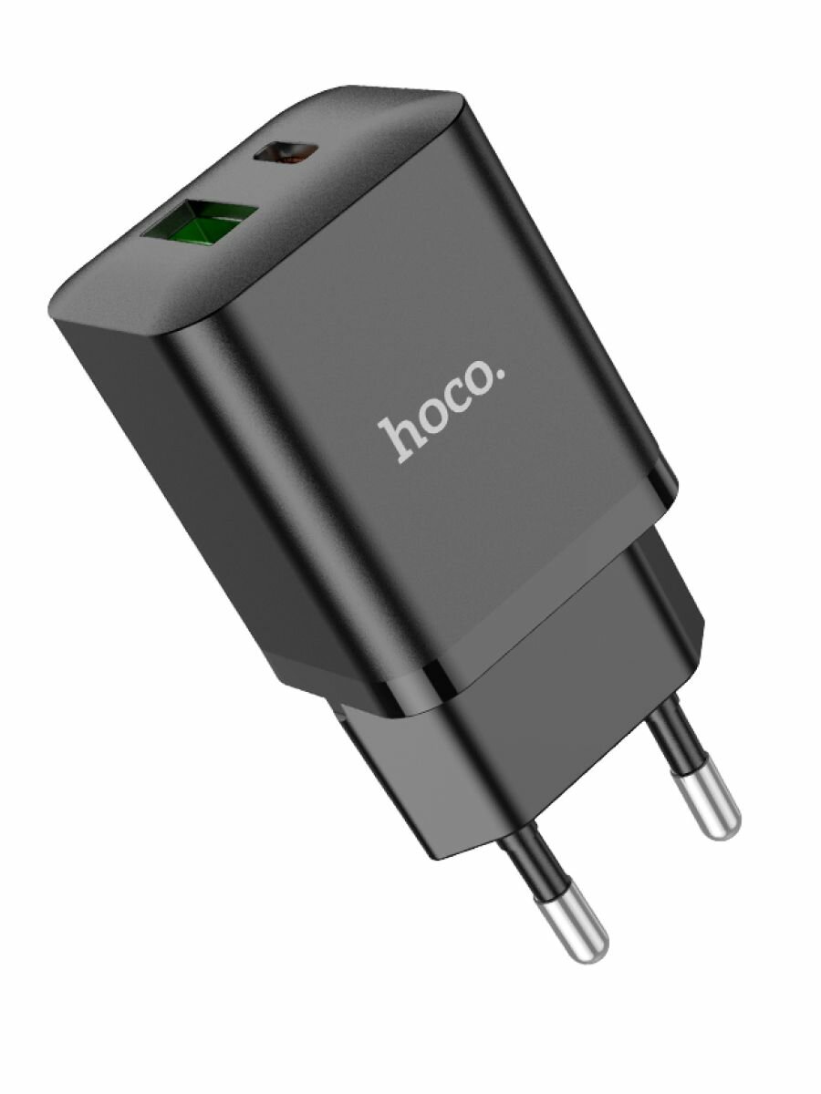 Сетевое зарядное устройство HOCO N28 USB-A, USB-C, 20W "быстрая зарядка", черный