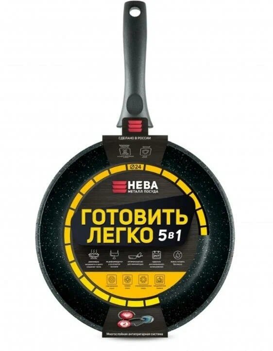 Сковорода 24 см Нева Металл Посуда Готовить легко, с антипригарным покрытием, литая, алюминиевая, черная