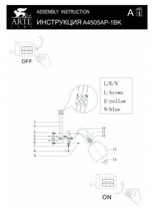 Arte Lamp A4505AP-1BK, E27, 40 Вт, 1 лампа