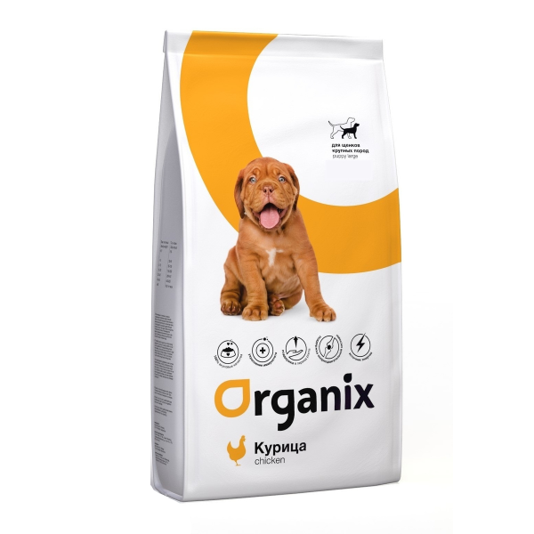 Купить Organix полнорационный сухой корм для щенков крупных пород с курицей для здорового роста и развития, 18 кг