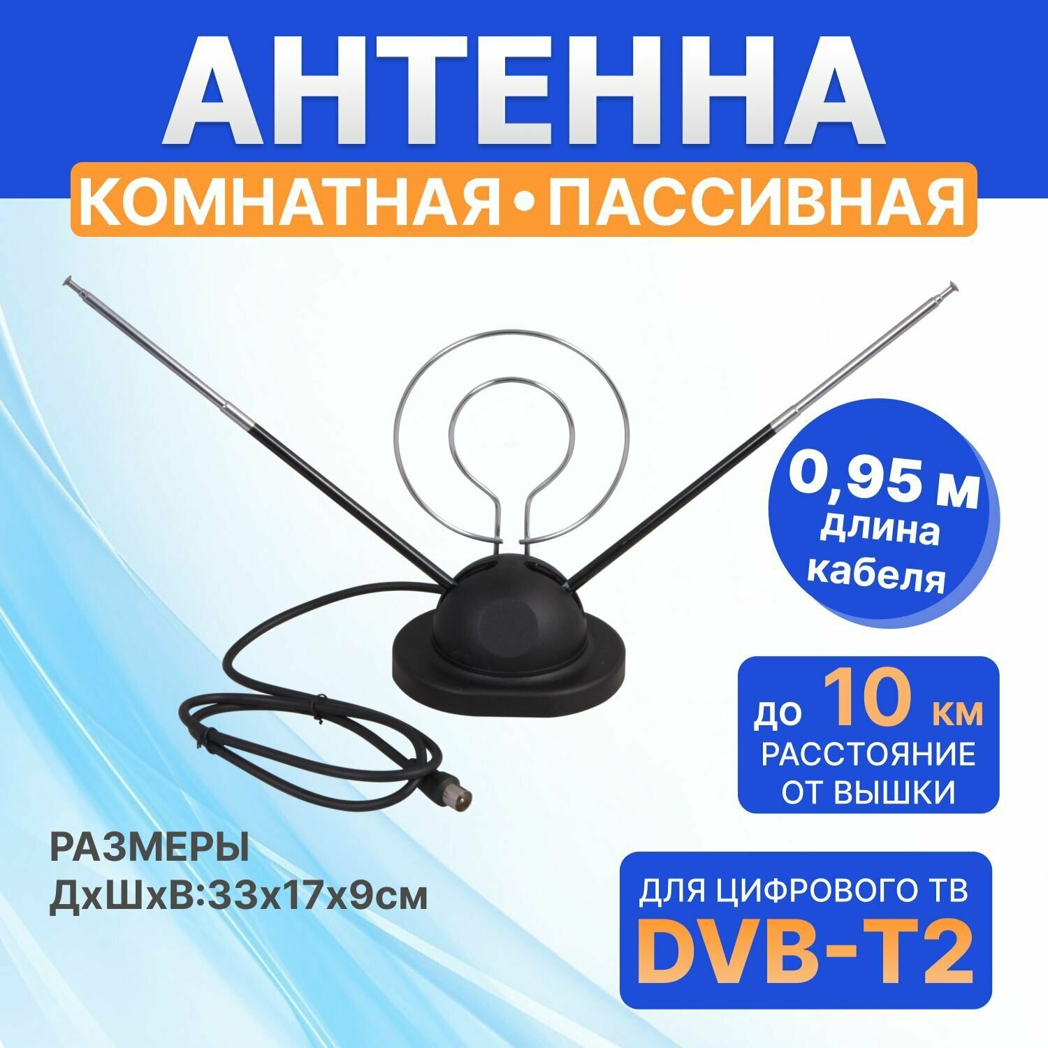 Антенна комнатная REXANT RX-105 усы с кольцом на подставке (МВ,ДМВ,DVB-T/T2) пассивная,3.5db 34-0105