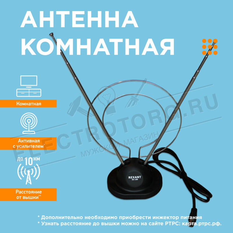 ТВ антенна комнатная телескопическая на подставке Усы, RX-105 Rexant 34-0105 .