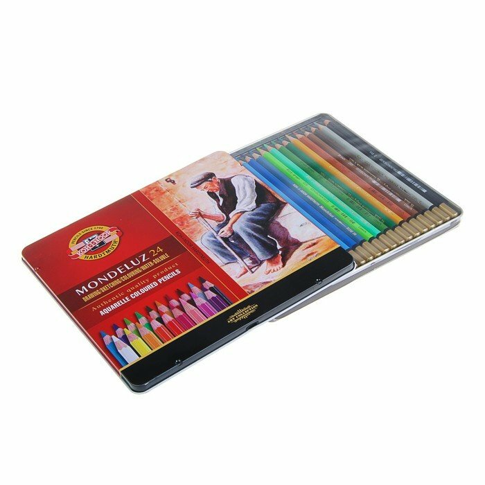 Набор акварельных карандашей Mondeluz Koh-i-noor, 24 цвета, в жестяном пенале