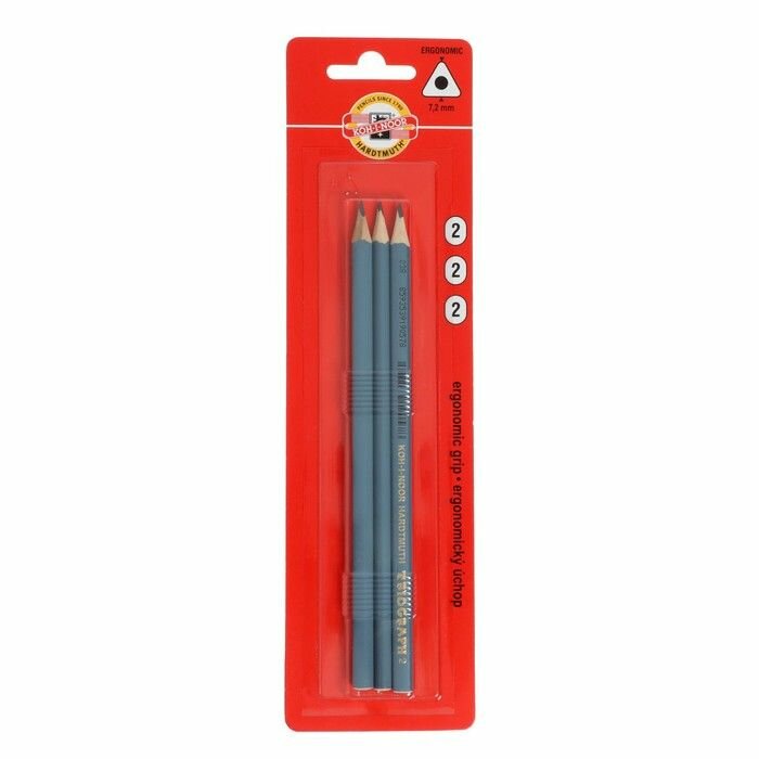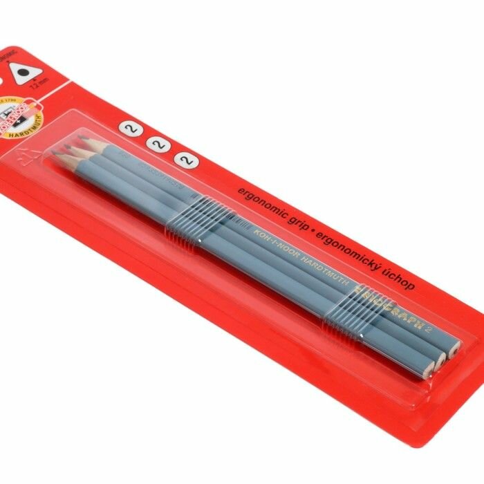 Набор карандашей чернографитных 3 штуки Koh-I-Noor TRIOGRAPH 1802 HB, серый корпус, блистер