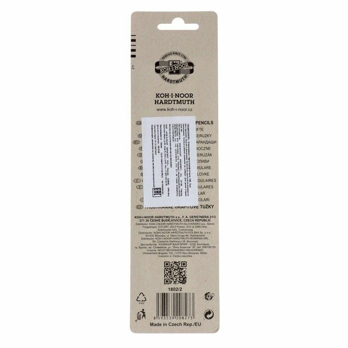 KOH-I-NOOR Набор карандашей чернографитных 3 штуки Koh-I-Noor 1580 B, комплект 2 шт., блистер