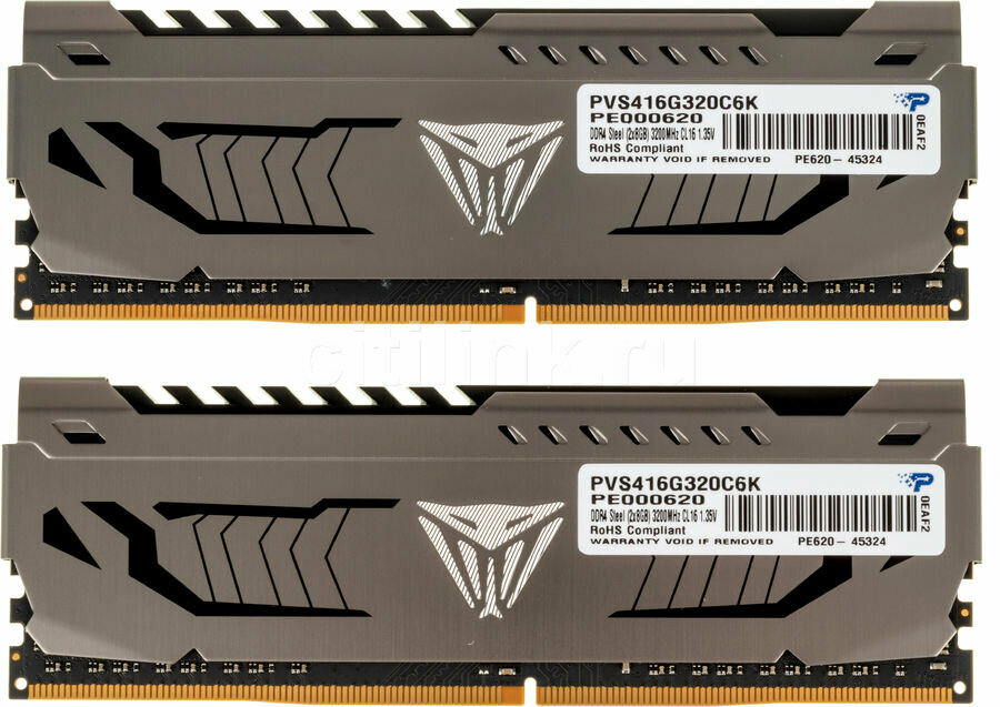 Модуль памяти DDR4 16GB (2*8GB) Patriot Memory PVS416G320C6K Viper Steel PC4-25600 3200MHz CL16 288-Pin XMP радиатор 1.35V