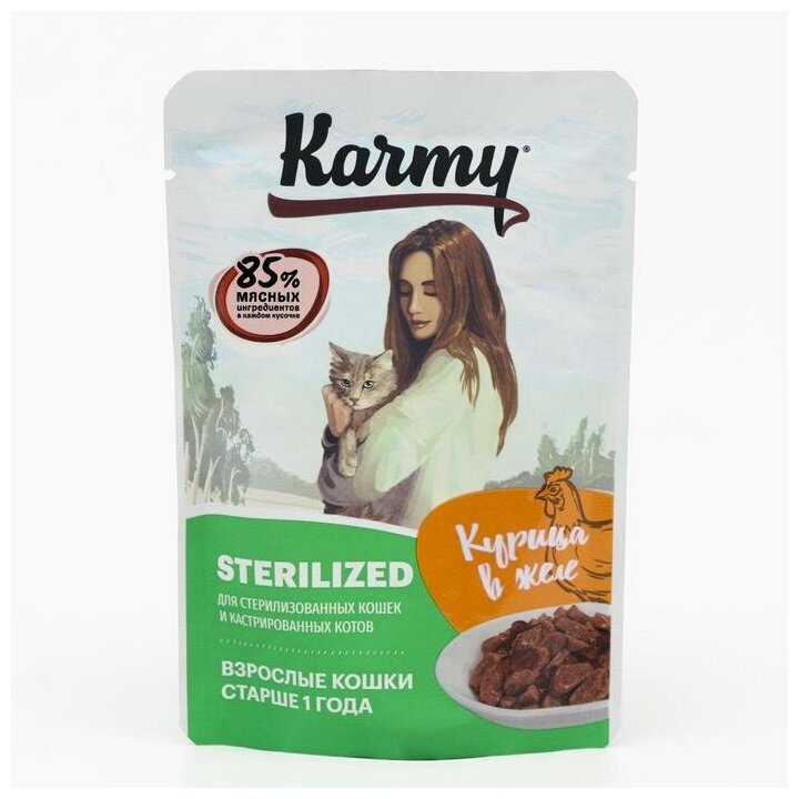 Влажный корм для стерилизованных кошек Karmy с курицей 24 шт. х 80 г (кусочки в желе)