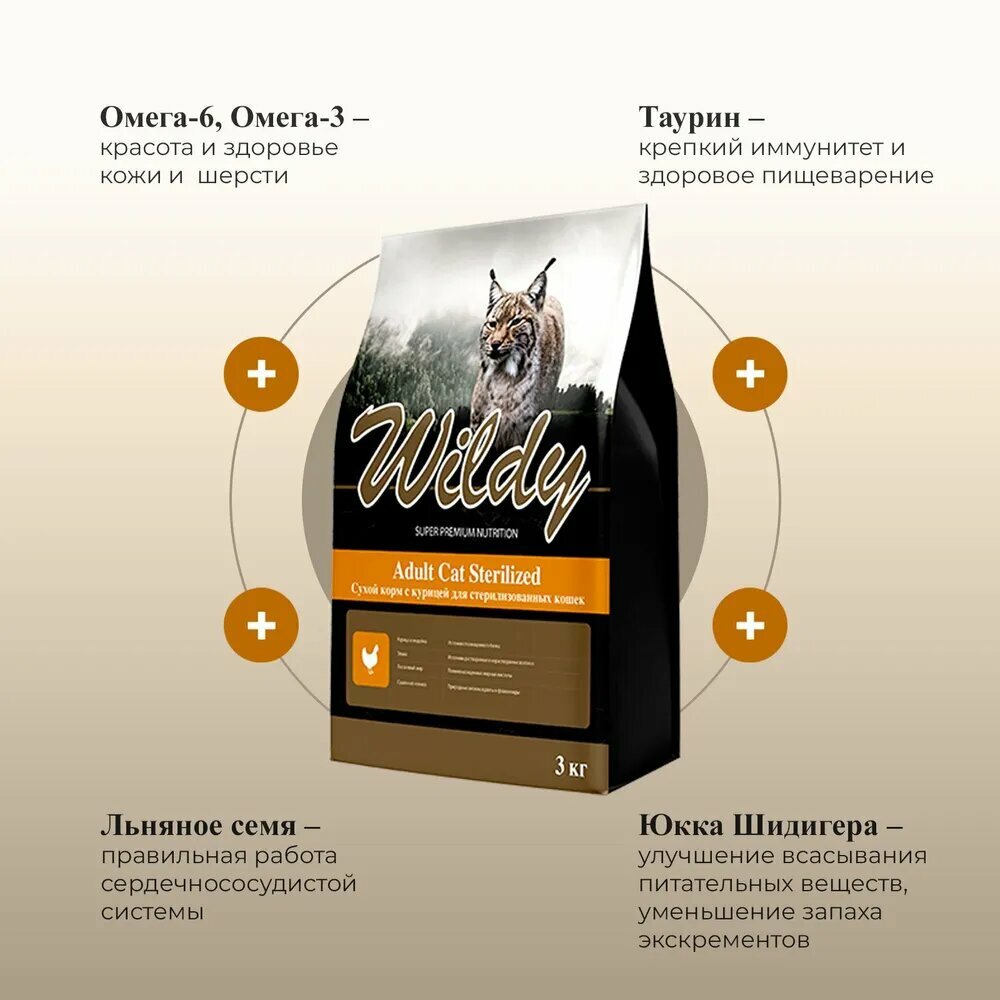 WILDY ADULT CAT STERILIZED для взрослых кастрированных котов и стерилизованных кошек с курицей (3 кг)