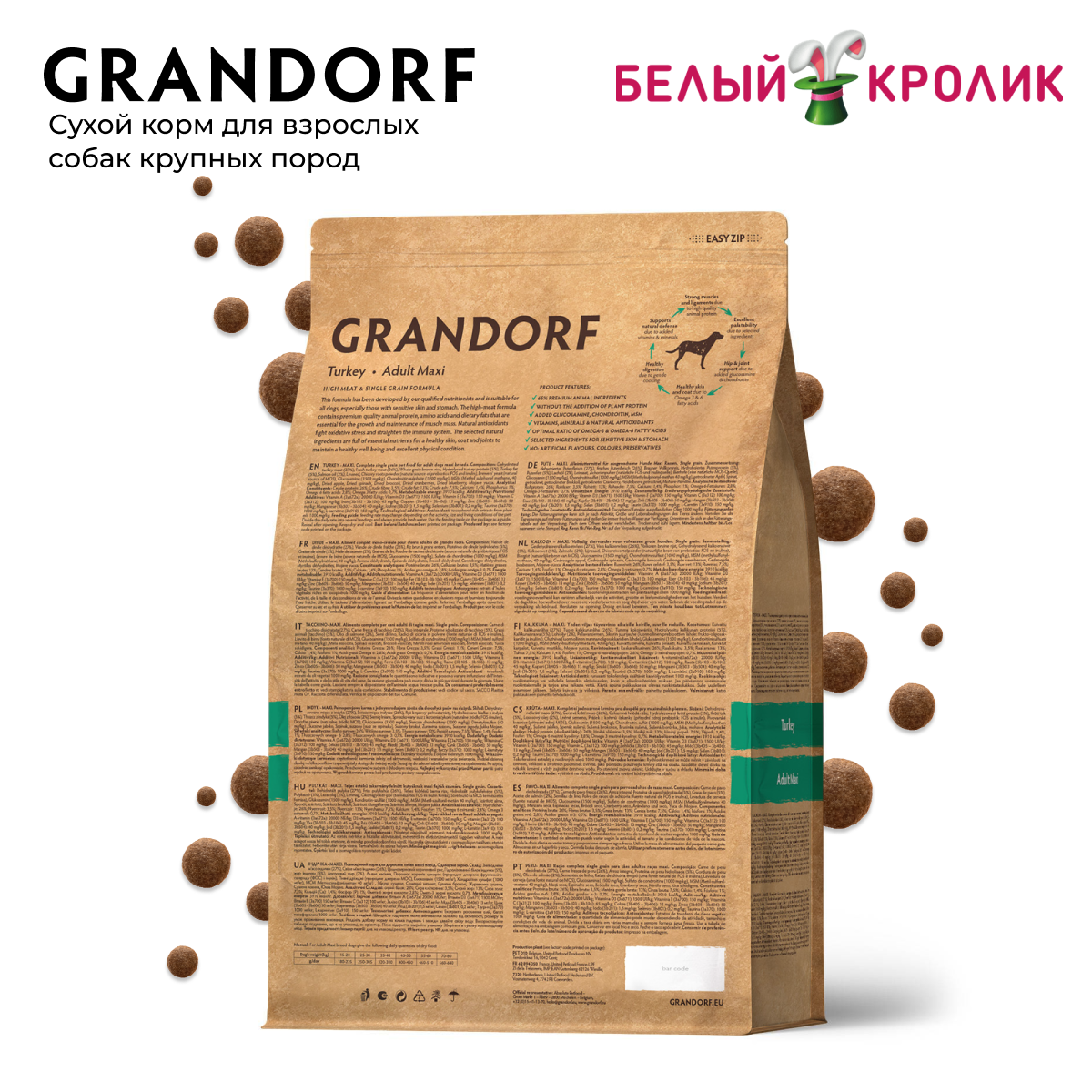GRANDORF SINGLE GRAIN DOG ADULT MAXI TURKEY низкозерновой для взрослых собак крупных пород с индейкой (3 кг х 4 шт)