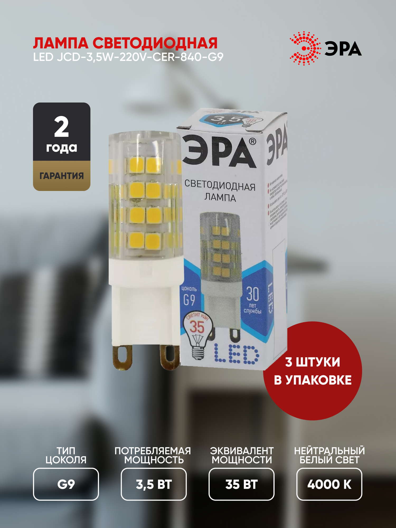 ЭРА LED JCD-3,5W-CER-840-G9 (диод, капсула, 3,5Вт, нейтр, G9)