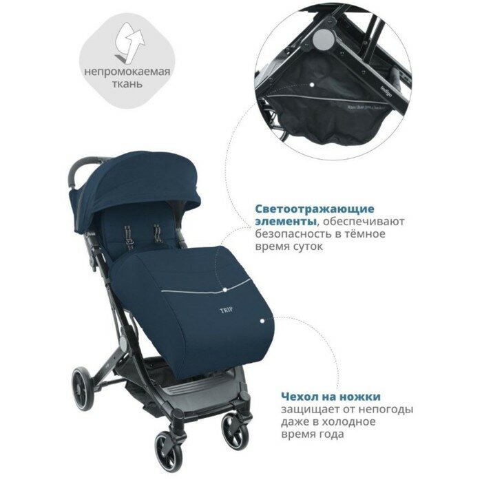 Коляска детская Indigo прогулочная, TRIP, цвет синий, капюшон с дополнительной секцией, 8,3 кг (АИ000001830#УТ0012443)