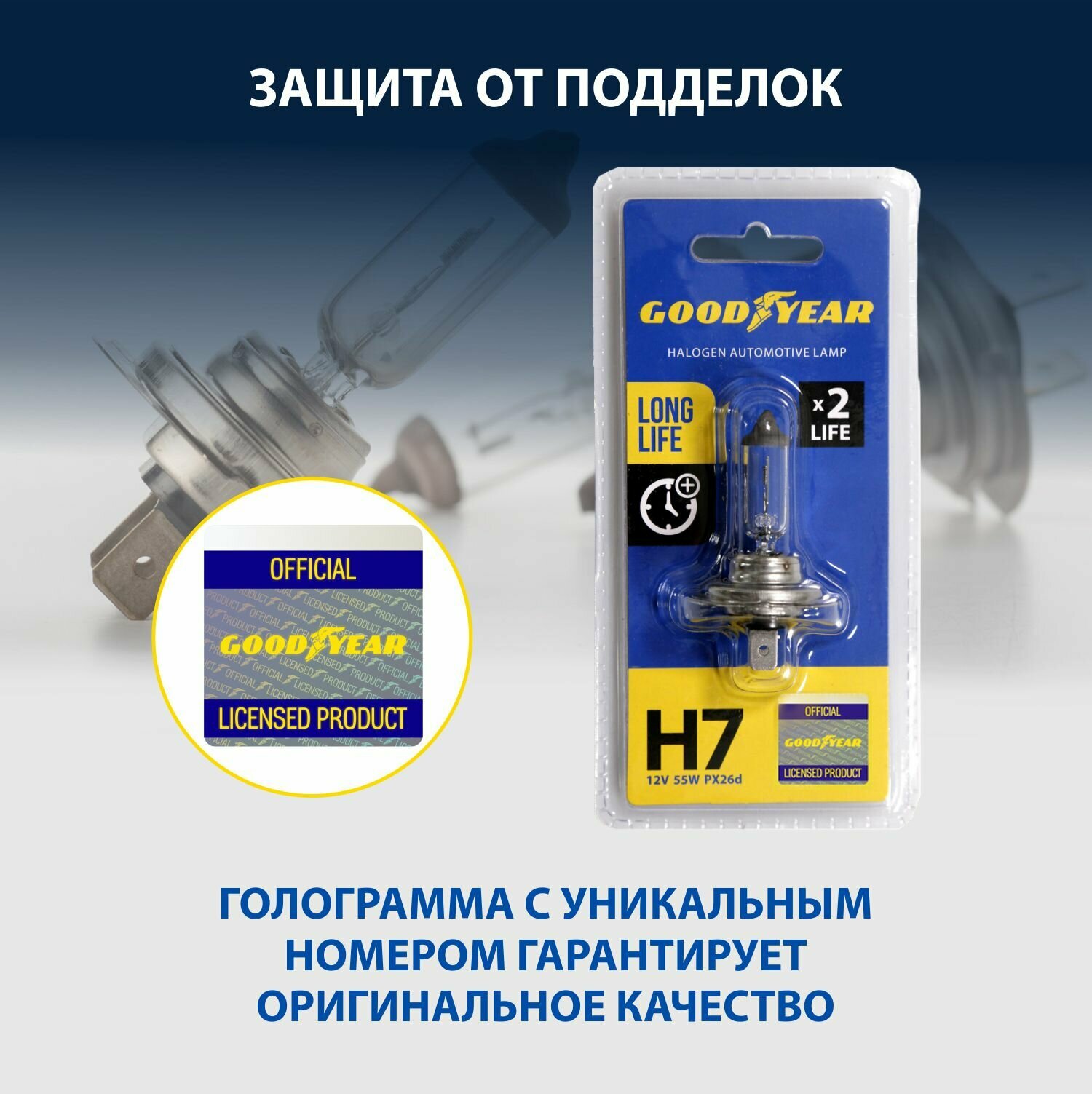 Лампа 12 В H7 55 Вт Long Life галогенная блистер Goodyear GOODYEAR GY017123 | цена за 1 шт