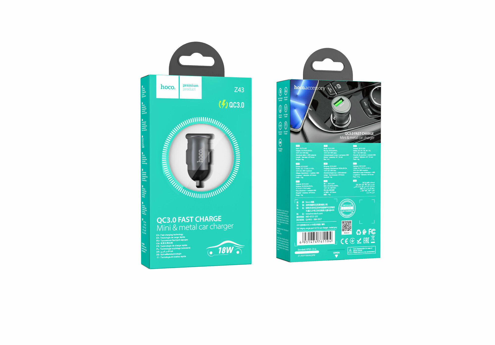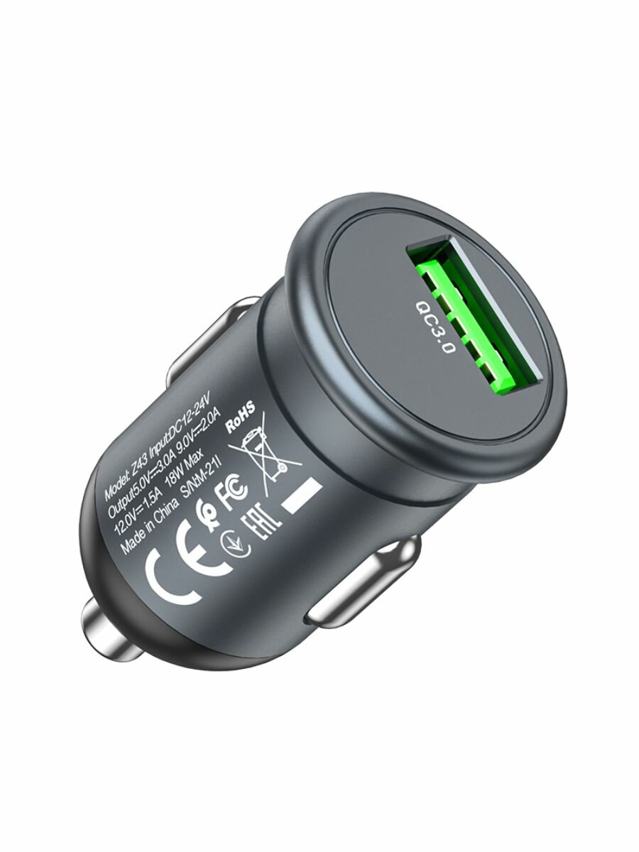 Купить Автомобильное зарядное устройство HOCO Z43 Mighty, 1xUSB, 18W, серый металлик