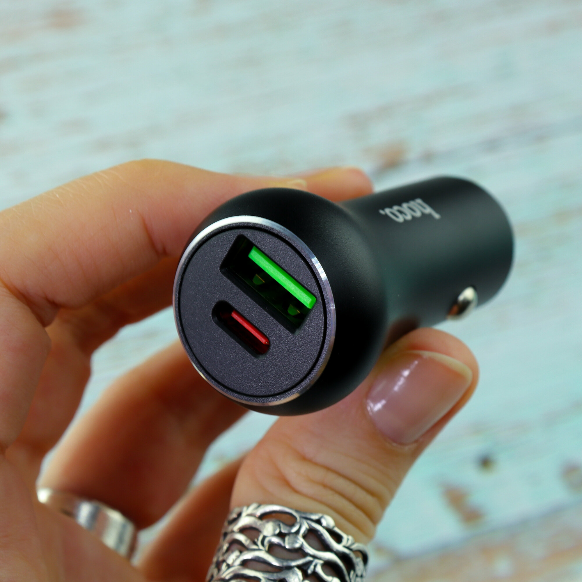 Автомобильное зарядное устройство HOCO Z38 Resolute, 1xUSB + 1xUSB-C, 38W, черный