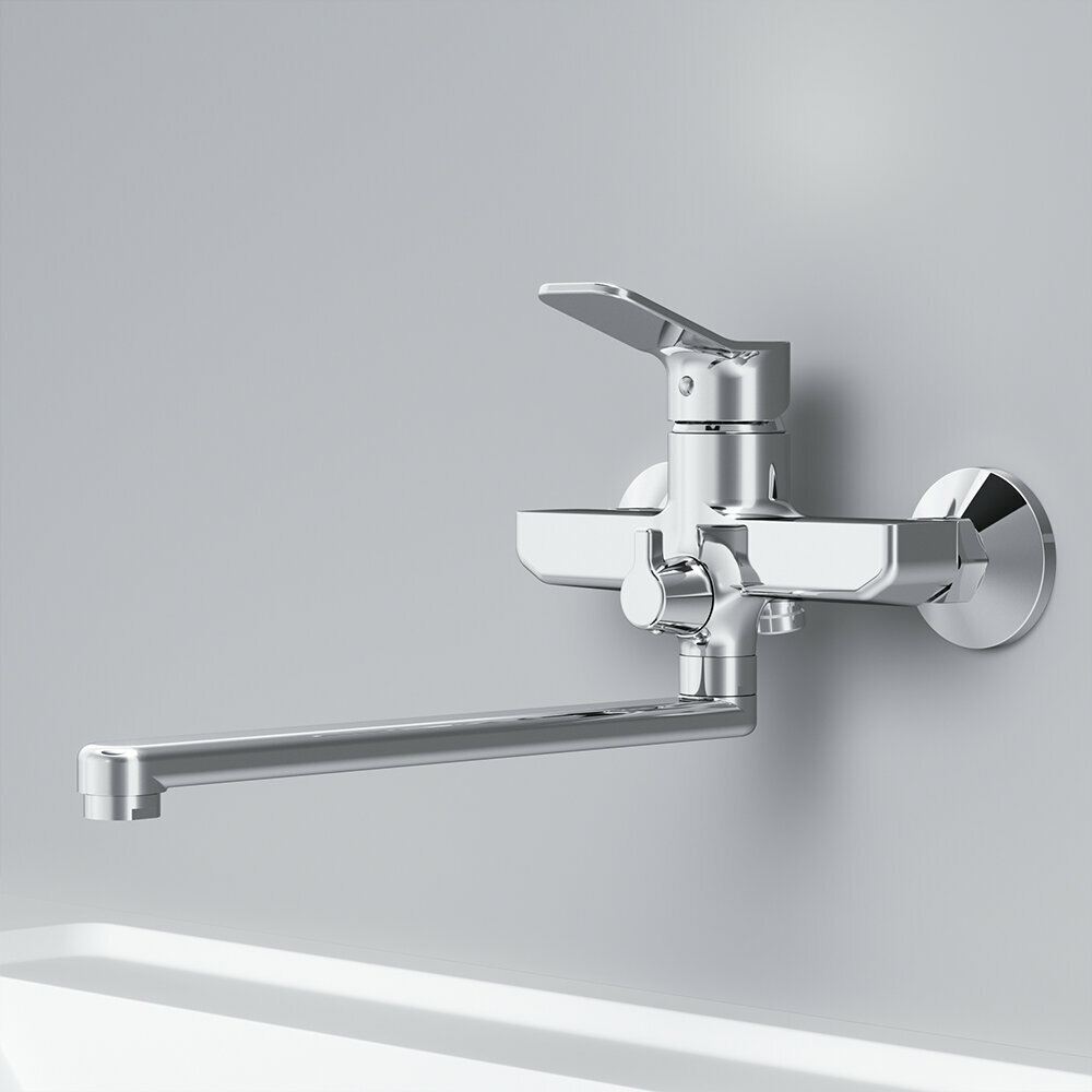 Смеситель для ванны с душем с длинным изливом AM.PM X-Joy хром, универсальный поворотный излив 300 мм