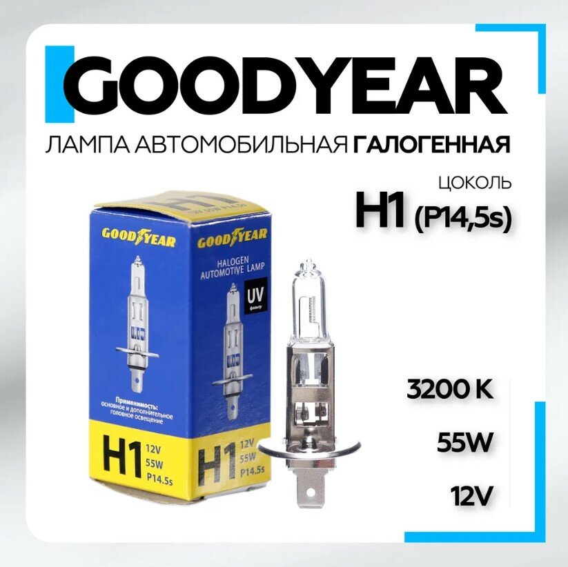 Лампа h1 галогеновая автомобильная Goodyear 12V 55W P14,5s для LADA ВАЗ 2110-2112, MITSUBISHI Colt, NISSAN Skyline/Teana, RENAULT Kaptur 1 пок/Megane IIб, VOLVO XC90 (птф)