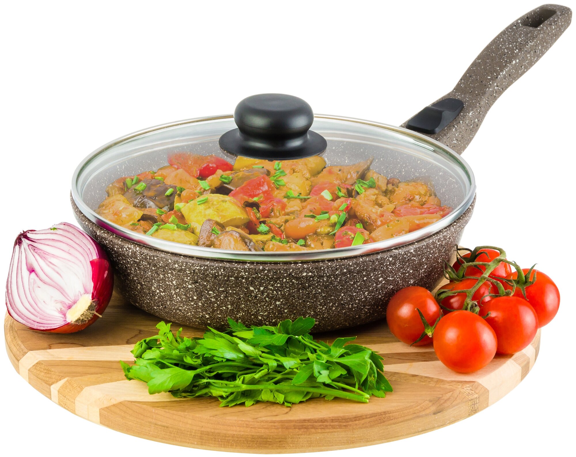 Сковорода глубокая 22 см Elan Gallery гармония вкуса Коричневый опал с крышкой D22, съёмная ручка