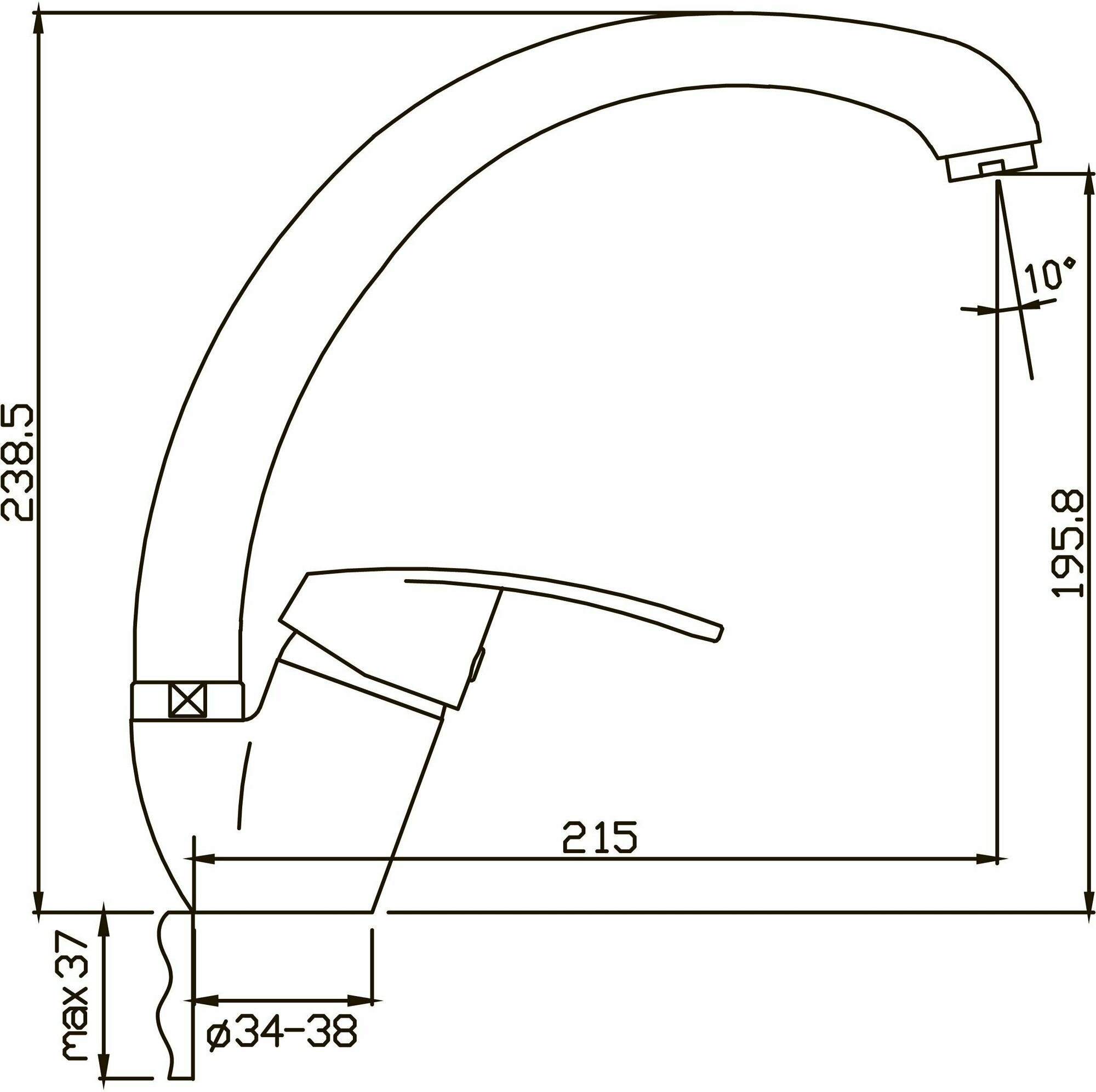 | Длина излива | 215 мм |