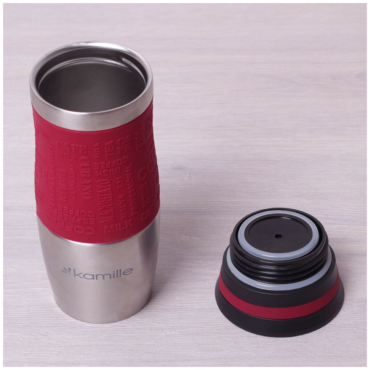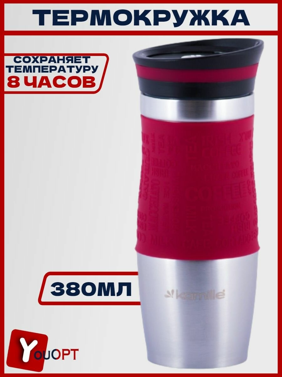 Термокружка 380 мл. из нержавеющей стали Kamille KM-2069 с TPR-вставкой (2069 / красный)