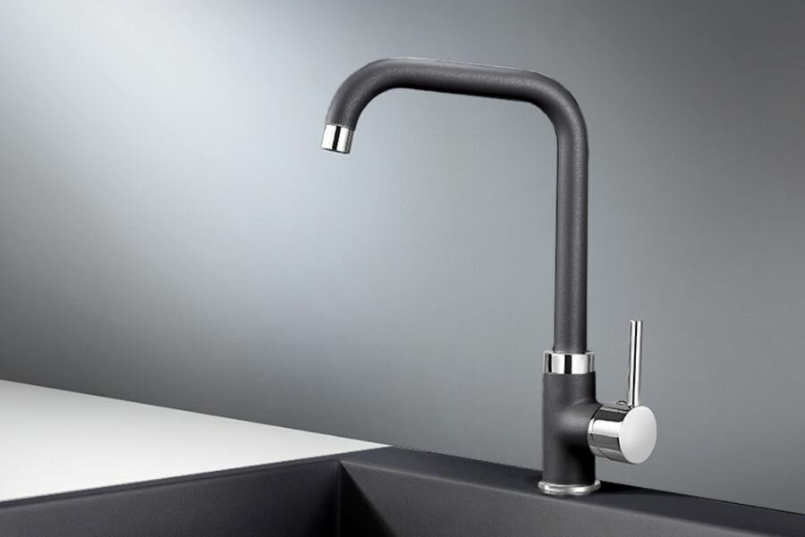 0041, Графит (Чёрно-Серый), Смеситель Кухонный