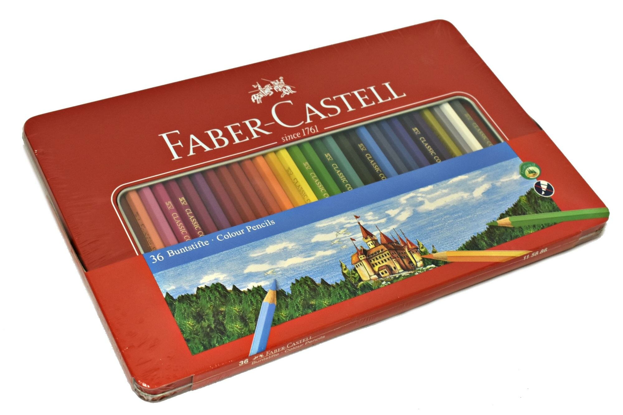 Купить Карандаши 36 цвета Faber-Castell Замок, шестигранный корпус, заточенные, в метал пенале 115886 .