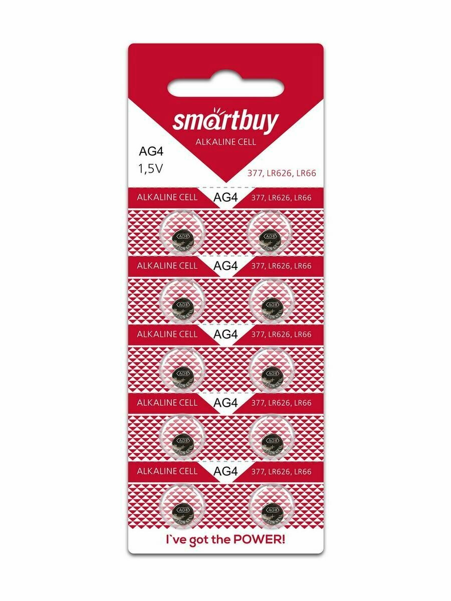 Батарейка LR66 (AG4, 377, 626) 1.5V SmartBuy Blister, упаковка 10 шт.