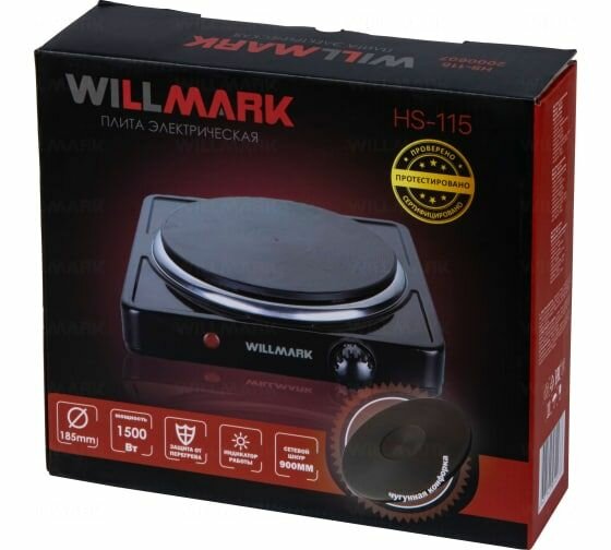 Плита настольная электрическая WILLMARK HS-115 черный (1-конф, чугун, 18,5 мм)