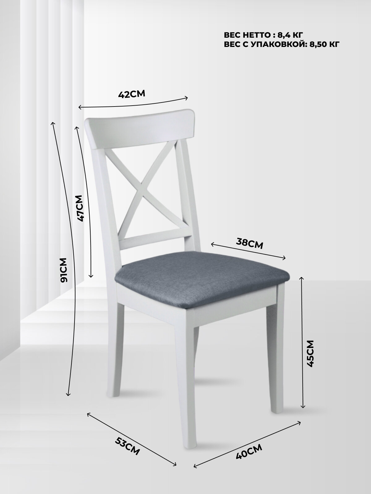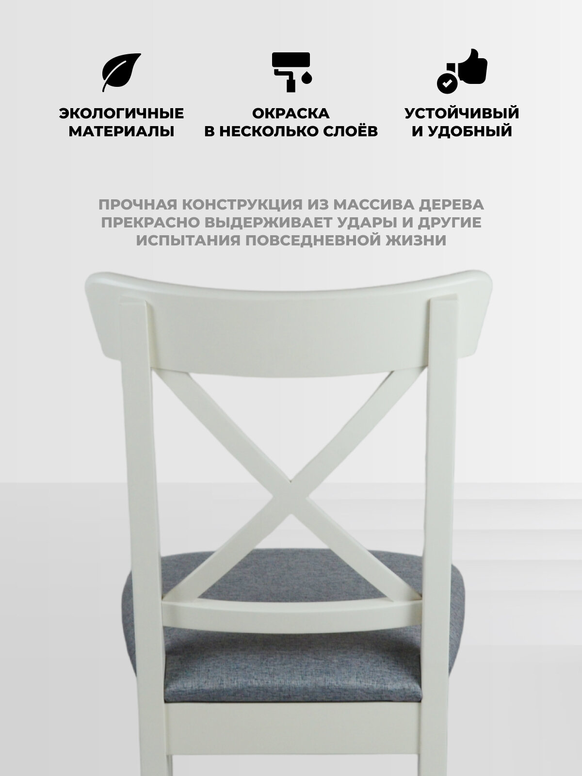 Купить Стул Ингольт из массива березы белоснежный с мягким сидением серого цвета для кухни, дачи, гостиной
