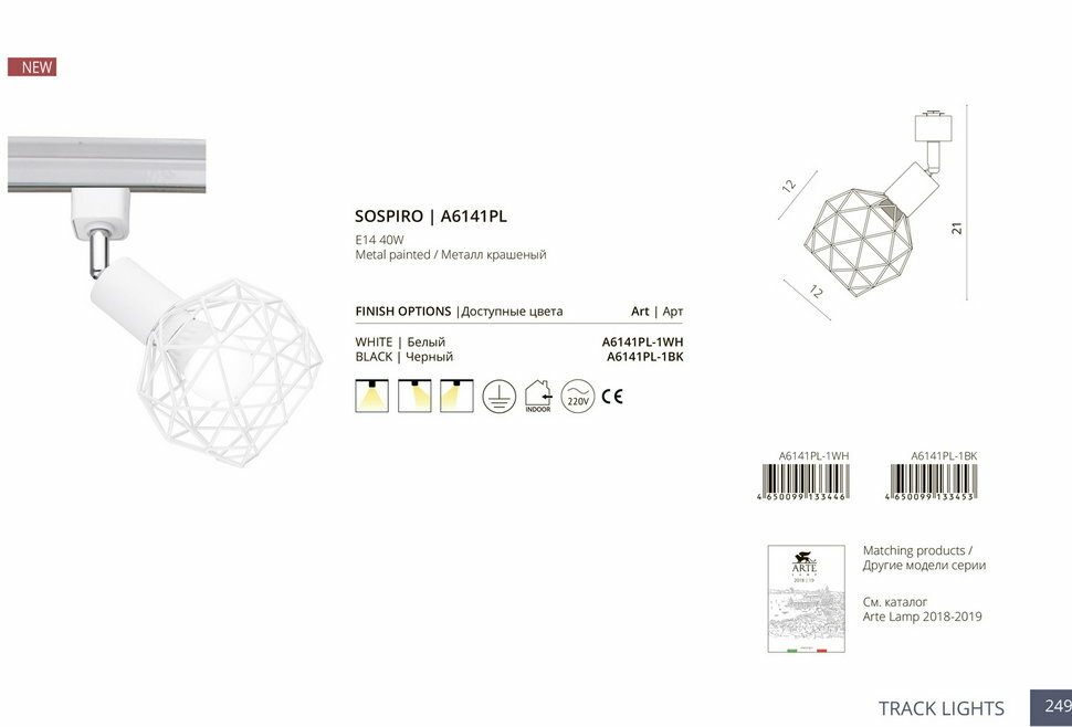 Трековый светильник SOSPIRO A6141PL-1BK Arte Lamp